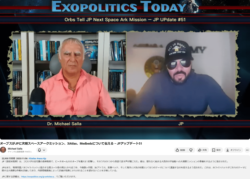 それより何より冒頭の話に戻ると、ある時期たたみかけるようにエレナ・ダナーンの3I/ATLAS『古代の生き物説』の動画を配信していた『Miyoko Abgel 2』が、しれっとその話題がなかったように『Tony Rodriguez』の『宇宙人に連れ去られた20年間の記憶談話』の方に舵を切り直した本当の理由は、恐らくNASAが公開した3I/ATLASの最新情報に対するけん制ではなかったかと私は見ている。