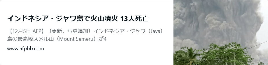 2021年12月4日、ジャワ島東部にある国内第2の都市スラバヤから南に約130キロ離れたスメル山が噴火した。