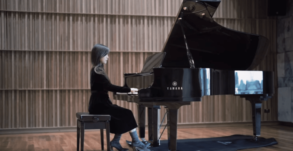 宮家の愛子さまがジーンズよりもローブデコルテのような、上品ないで立ちが似合うように、ミンリーにも同じことが言える。彼女がグランドピアノの前にセミフォーマルのドレスを着て着席した時の色香は、そもそもミンリーが持って生まれた天性のものであり、それはけっして誰かが作って取って付けたものではない。⇩